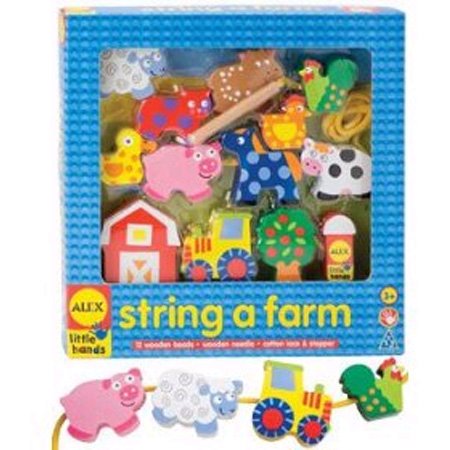 This toy is terrific for two-year-olds. My daughter loves stringing the animals and other farm related beads. She especially likes the tractor and the chickens. The farm pieces do make quite a noise when dumped off the string, but that doesn't bother us. This toy is durable, colorful, and fun.